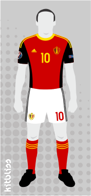 Belgium: Red and black should both feature strongly on Belgium's home shirt (in my opinion), so I've ensured that's the case along with the yellow trim that's also a vital component. As for the away kit, that's predominantly white. Both kits are inspired by the Admiral outfits worn by the Belgians during their purple patch of the early 80's.