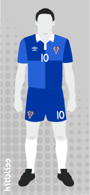Croatia: This kit may well be my favourite of all those I've designed so far. The perpetual question for proper kit designers must be 'How do you modernise the classic Croatia checkerboard shirt without making a complete Jackson Pollock of it?' My answer is to reduce the red and white checks to a simple 2 x 2 in red and white on an Umbro 'Tailored By' kit. The away kit follows the same approach in a two-tone blue colour scheme. I'd buy it, even if no-one else would.