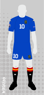 Spain: I figured the Kappa-esque template used for the Northern Ireland kit (see Group C) would work well for Spain. I've therefore replicated it in the greatest and best colour combo ever for the Spanish team, namely red-blue-black. Adidas tried and failed to change the sock colour to blue and then red but neither worked. The socks *have* to be black, and thankfully the German kit manufacturer has seen sense by going back to it.