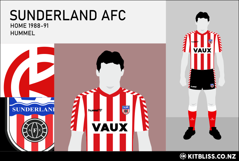 "As a designer, there’s not too much you can do with a striped shirt, but Hummel aren’t just any designers. Of course, equally iconic for the Mackem masses was the shirt sponsor, Vaux; a local (and now extinct) brewery built on the site of a Roman fortress which is now barren ground overshadowed by the Stadium of Light on the opposite bank of the Wear. It’s interesting to note that the ‘retro’ replica shirt bears the name of the sponsor, but there’s not a chevron in sight.