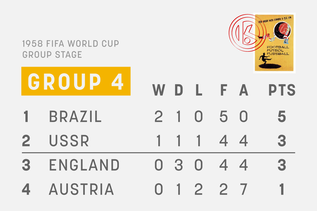 The final Group 4 table in the first round of the 1958 World Cup.