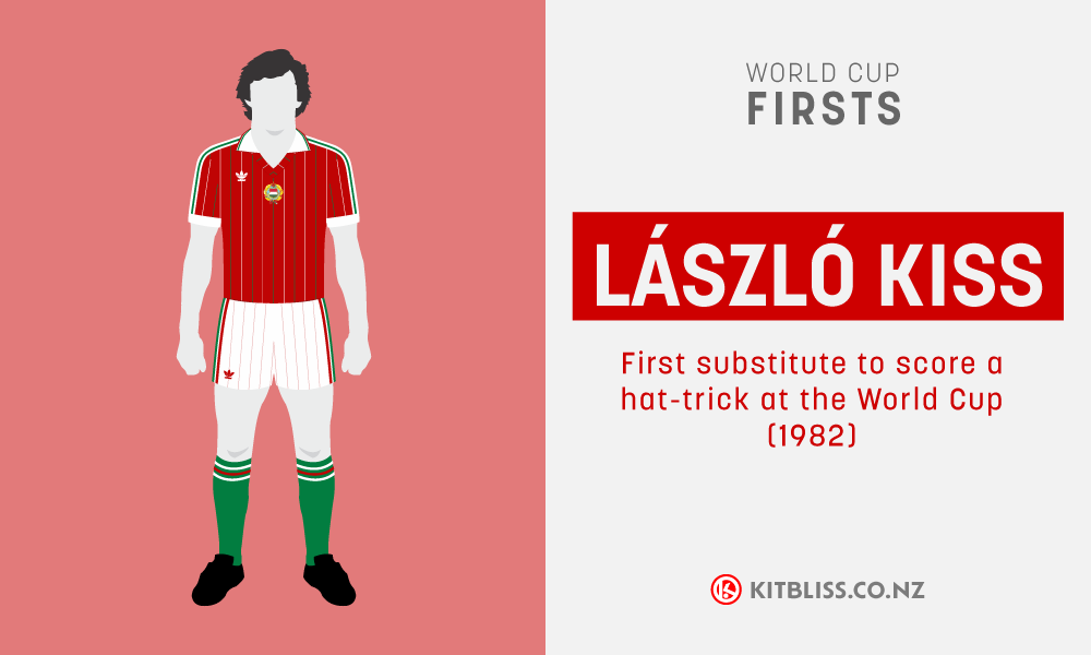 László Kiss becomes the first substitute to score a hat-trick in a World Cup match, 1982