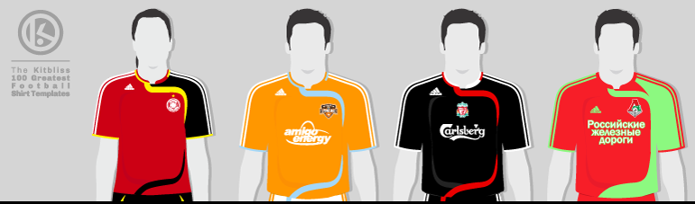 From left: Germany Women (2007 away), Houston Dynamo (2007-08 home), Liverpool (2007-08 third), Lokomotiv Moscow (2007 third).