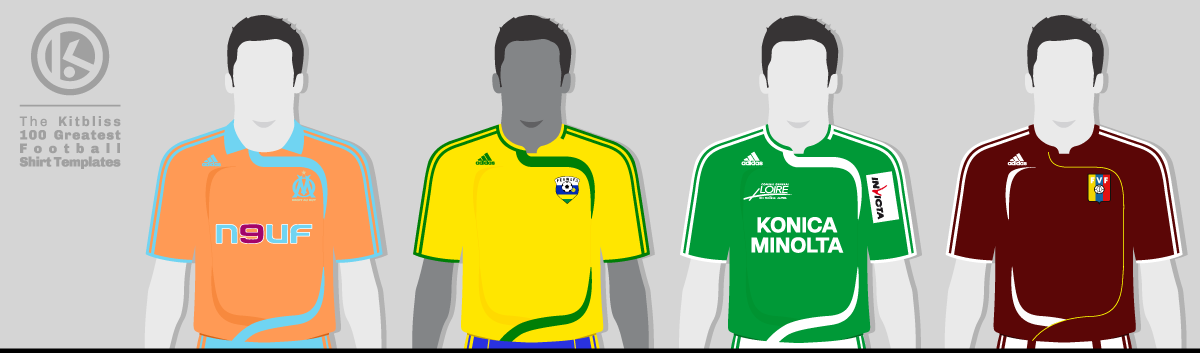 From left: Olympique de Marseille (2007-08 away), Rwanda (2009 home), Saint-Étienne (2007-08 home), Venezuela (2007-08 home).