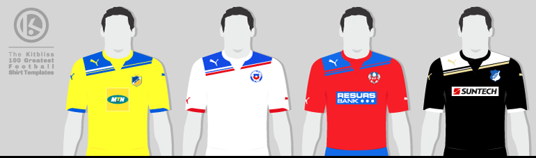 From left: APOEL (2011-12 home), Chile (2011-12 away), Helsingborgs (2011-12 home), Hoffenheim (2011-12 third).