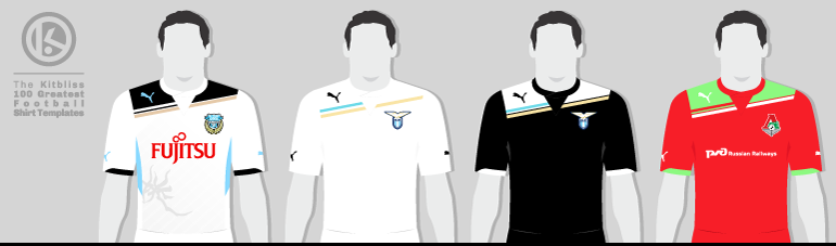 From left: Kawasaki Frontale (2011 away), Lazio (2011-12 away and third), Lokomotiv Moscow (2011 home).