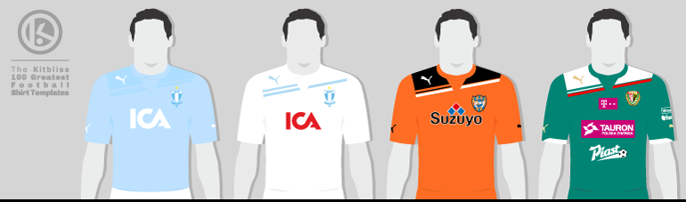 From left: Malmö FF (2011-12 home and 2011 away), Shimizu S-Pulse (2012 home), Śląsk Wrocław (2012 home).