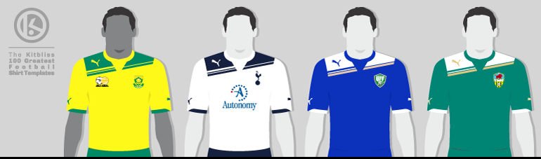 From left: South Africa (2011 home), Tottenham Hotspur (2010-11 home), Uzbekistan (2011 away), Zimbru Chișinău (2012 away).