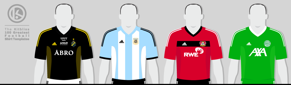 From left: AIK (2002 home), Argentina (2002-03 home), Bayer Leverkusen (2002-04 home), Ferencváros (2002 home).