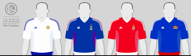 From left: Finland (2003 home), France (2002-03 home), Hungary (2002-04 home), Liechtenstein (2002-03 home).