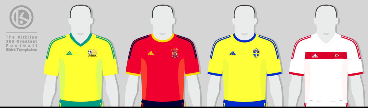 From left: South Africa (2002-03 home), Spain (2001-03 home), Sweden (2002 home), Turkey (2002-03 away).