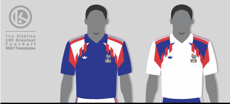 And then, of course, there was France - seemingly the first team to wear the design back in 1989. Their version differed from virtually any other in that it incorporated a third colour and used solid skewed rectangles, not outlines. It’s possible that some might baulk at the inclusion of these two French shirts purely because of those solid rectangles, but in every other respect the design is essentially the same. For what it’s worth, I prefer the subtlety of the outlines, but not to the extent that it would stop me mentioning those shirts worn by Eric Cantona, Didier Deschamps and many others.
