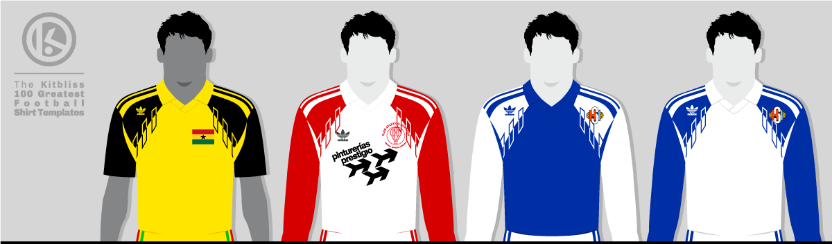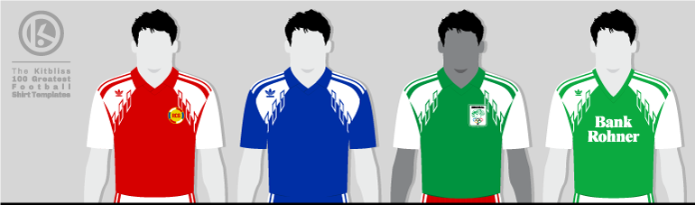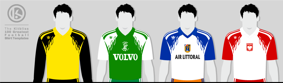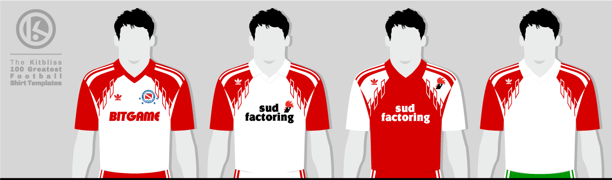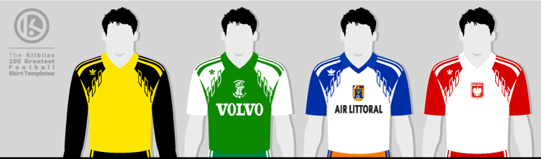 Following the publication of this article, I heard from Δurine® who informed me that Argentinian club Mandiyú wore the Adidas Glasgow template around 1993. Thanks for the info, Δurine® - I've now added Mandiyú's home kit to their team page and the template gallery page.