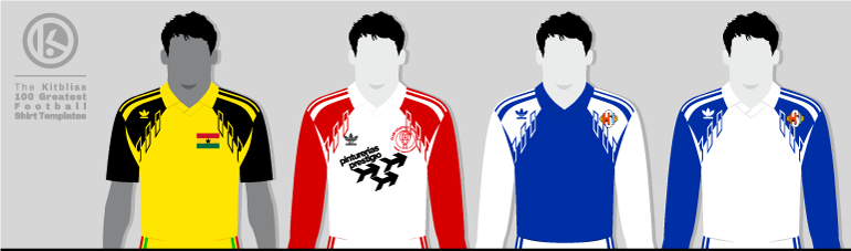 For some teams, the Adidas Glasgow template seemed a means to an end. Bulgaria wore their version only once against Switzerland in 1992, while Romania only donned their quirky blue away shirt twice in 1990. Czechoslovakia wore home and away versions sporadically between 1990 and 1991, yet when the national team transitioned into the Representation of Czechs and Slovaks, the template made an unlikely return for one match only in 1993 against the Faroe Islands. As for Ghana, they wore their vivid yellow kit in the final of the 1992 African Cup of Nations competition which they ultimately won.