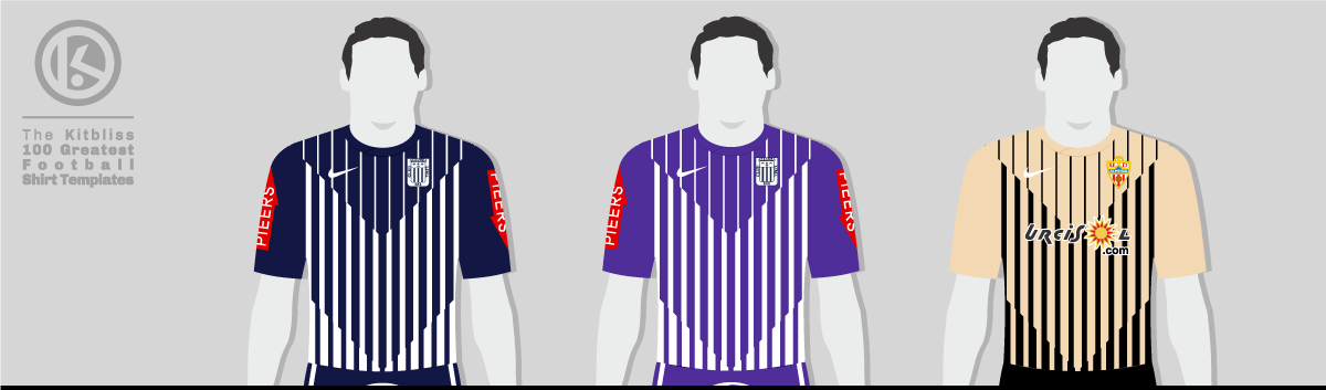 Tasty, perhaps, but also too spicy for many teams’ palettes as I couldn’t find very many versions worn by anyone of any stature. Of those I did stumble upon, two were in a rather fetching gold and black combination, as featured in the away kits of Almeria and Bradford City. Two were in the more conventional red and white (Girona and Lincoln City), but arguably the most interesting versions were worn by Peruvian club Alianza Lima. In 2012, a century on from adopting navy blue and white for their home kit, they wore Nike ‘Flow’ shirts coloured to suit. Every October, however, Alianza Lima wear a purple change kit as a sign of its devotion to the Lord of Miracles, and this year was no exception. In October 2012, the team from the Peruvian capital wore the same template in a fetching shade of purple, making them the only team to wear it in two different colourways.