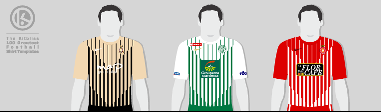 As I often say in this series, it’s a pity more teams didn’t wear this design, if only to allow us to see what it would have looked like in a wider range of colours. Such as it is, only a handful wanted to wear this futuristic take on the humble striped shirt which may have been a little too ‘out there’ for many. For some reason, though, the more people rail against a template like this, the more I’ll stand up for it. Originality is worth its weight in gold where football shirt design is concerned, and it’s my pleasure to provide suitable examples such as this for future evaluation.