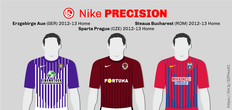 Aside from the official template name, I also heard from SVBJude on X. He told me about a further four teams that wore Nike Precision - Stockport County, Omonia Nicosia, Erzgebirge Aue and Steaua Bucharest. All were worn during the 2012-13 season, but alas I couldn't find photographic/video evidence of the first two teams wearing theirs in an official match situation. Until I see those, I've drawn the latter two kits, and they've now been added to the appropriate galleries on the website. Thanks SVBJude!