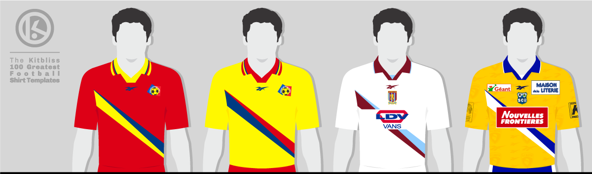 Generally speaking for this template, any variations from team to team were minimal. In France, Bastia’s yellow away shirt had a shadow pattern consisting of repeating Reebok logos and club badges, yet this seems to be the only shadow pattern in the set. Three different versions of the Reebok logo crop up, including the Reebok wordmark, and several teams wore their crest inside a tiny shield container. Then again, some (such as FC Utrecht and Borussia Mönchengladbach) ditched the shield and showed off the crest without it. Hannover 96 and Andorra went further still by moving it away from the common central position and wore it on the left breast instead.