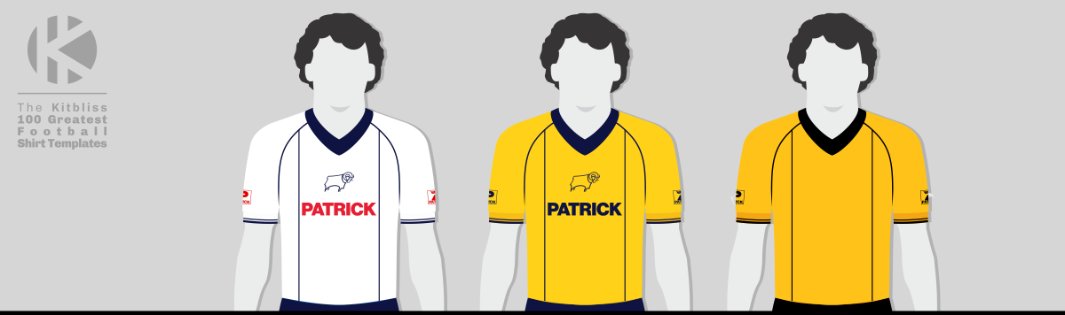 Patrick, however, went one better. Instead of leaving their arc lines untouched, they added a simple pair of highly effective verticals running down either side of the chest. In so doing, they cleverly created a look couldn't be easily copied without people immediately associating the design with them specifically. At the start of the 1981-82 season, it was Derby County who first wore Patrick's new template, and their version, appropriately enough, bore the name of the kit supplier as main shirt sponsor.