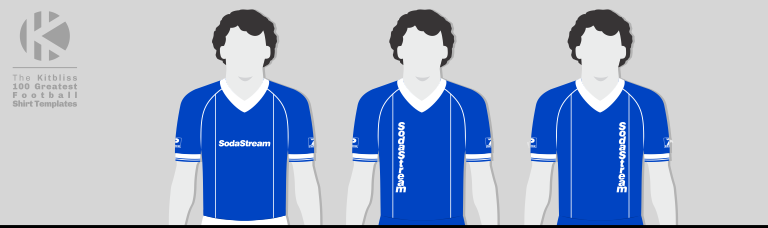 In 1983-84, the name of SodaStream straddled the gap horizontally between the two vertical lines of piping, but at different times during the two seasons following, the name ran from top to bottom on the left or the right. Vertical sponsorship - odd, but as Sheffield United showed two years earlier, not a first by any means.