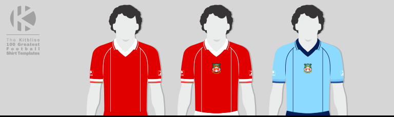 Wrexham, a Second Division team like Derby County, also debuted their Patrick shirt that season, and theirs differed slightly in having a winged collar rather than a thick v-neckline. These were the two styles available, and both looked smart and more than fit for purpose. All versions of the shirt located the team's badge centrally, while Patrick's own logo could be found on the sleeves - in both cases an approach used on Le Coq Sportif's Tottenham Hotspur shirt of the era. This was something quite daring for football shirts at the time, but the break with tradition of having 'supplier's logo on the left, team badge on the right' was certainly a refreshing change.