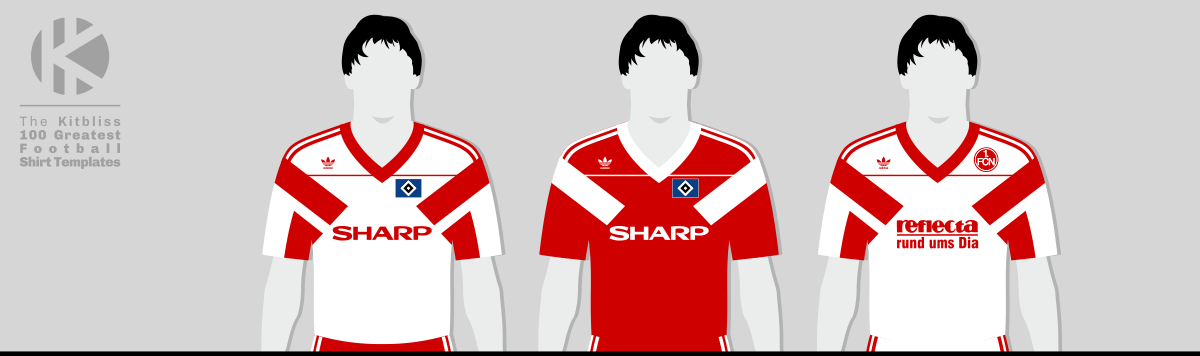 From left: Hamburg SV (1989-90 home and away), Nürnberg (1990-91 away).