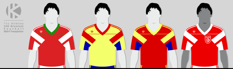 It feels somehow right and proper that this template should have seen some success for one of its teams at the very least, but it has a distinct air of 'what might have been' about it. We never saw it in England back in the day, because the only teams wearing Adidas were Arsenal, Liverpool and Manchester United. The design, at a push, might have worked for United, but probably not the other two. As for the 1990 World Cup, it should have been worn by Cameroon in my view, and could even have become a cult classic in the colours of the Netherlands or Ireland.