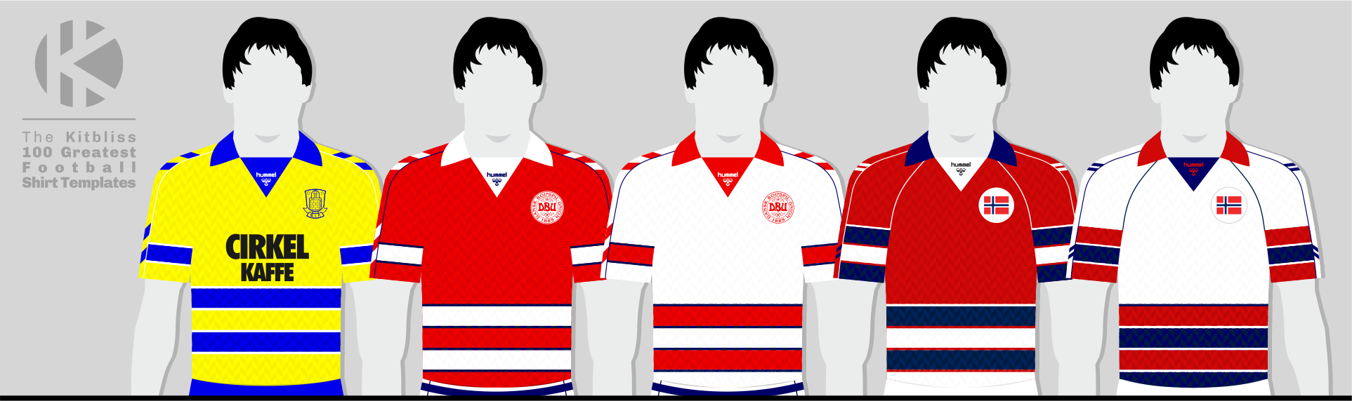After all that, it would be nice to say that a great many teams wore it around this period, but alas, that's not the case. Aside from Denmark, it was only Norway who followed suit on the international stage, and their home and away kits only differed in the amount of navy blue that was employed (save for some extra shoulder piping and restyled chevrons on the sleeves). Brøndby were the only club team to adopt it, and very fetching they looked too in their traditional colours of yellow and blue.